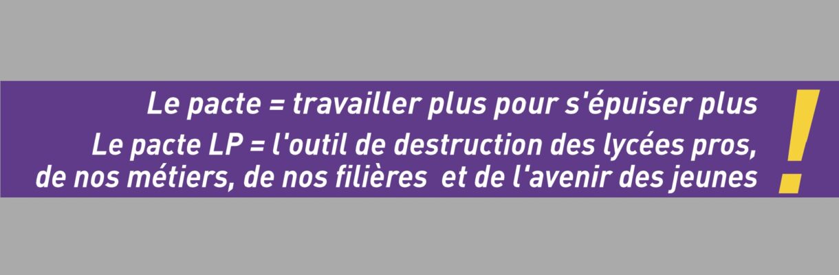 Salaires bas et conditions de travail difficiles en sont deux problèmes majeurs en lycée pro. Le pacte ne répond en rien à ces problèmes car travailler plus pour gagner plus n’est pas une revalorisation et imposer des missions supplémentaires pour améliorer le pouvoir d’achat ne résout pas nos difficultés mais, au contraire, dégradera toujours plus les conditions d’exercice de nos métiers. Le pacte est, de surcroît, un outil de discrimination indirecte envers les femmes qui va renforcer davantage les inégalités salariales.Le président compte sur le déclassement salarial des enseignant·es de lycée professionnel pour trouver des signataires. Mais surtout, le pacte LP est un axe central pour la mise en oeuvre de la réforme.