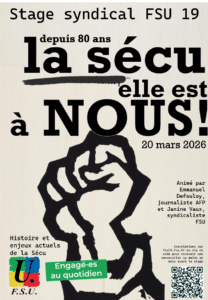 Ce stage se tiendra à Tulle (salle Latreille). Ce stage, organisé alors que nous célébrons les 80 ans de la création de la Sécurité Sociale, portera sur l’histoire et le futur du système de la Sécurité Sociale. Interviendront lors de ce stage Emmanuel Defouloy, auteur d’un livre sur Ambroise Croizat, père de la Sécurité Sociale et par Janine Vaux, militante à la FSU et à la Convergence des Services Publics. Il portera sur l’histoire et les enjeux actuels de la Sécu et sera l’occasion de comprendre le mandat de la FSU d’un 100 % Sécu.